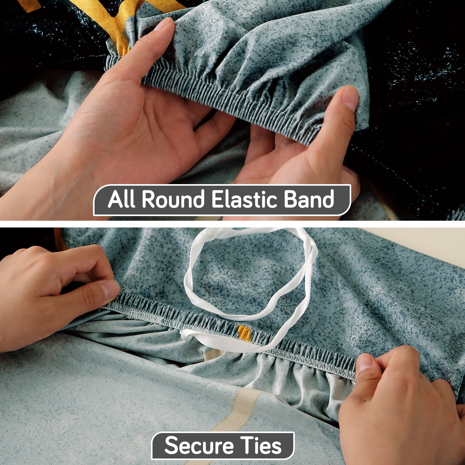 Printed Stretch Fit Water-Repellent & Anti-Slip Table Cloth Cover for 4 Seater / 6 Seater, Multicolor Abstract Geometry