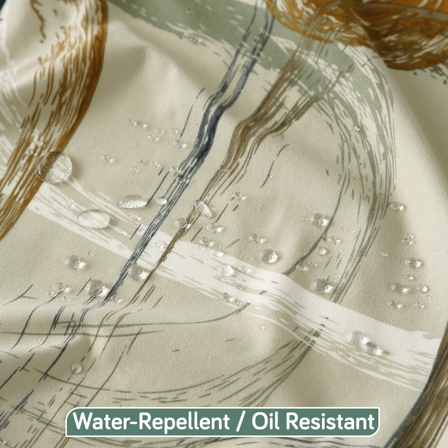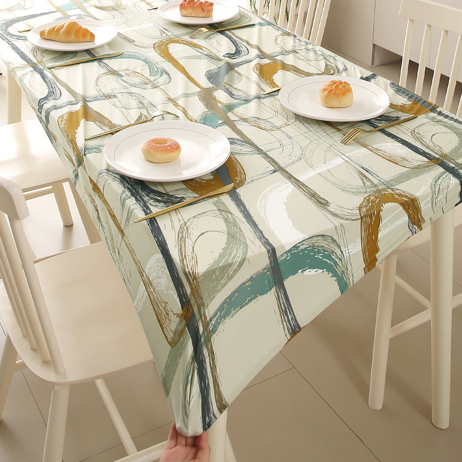 Printed Stretch Fit Water-Repellent & Anti-Slip Table Cloth Cover for 4 Seater / 6 Seater, Parchement Beige Abstract Art