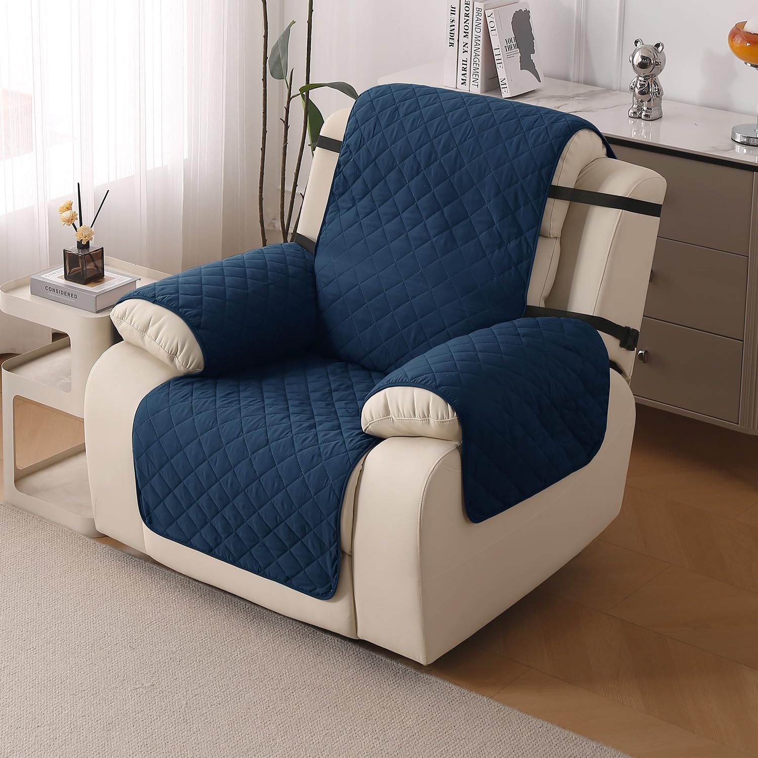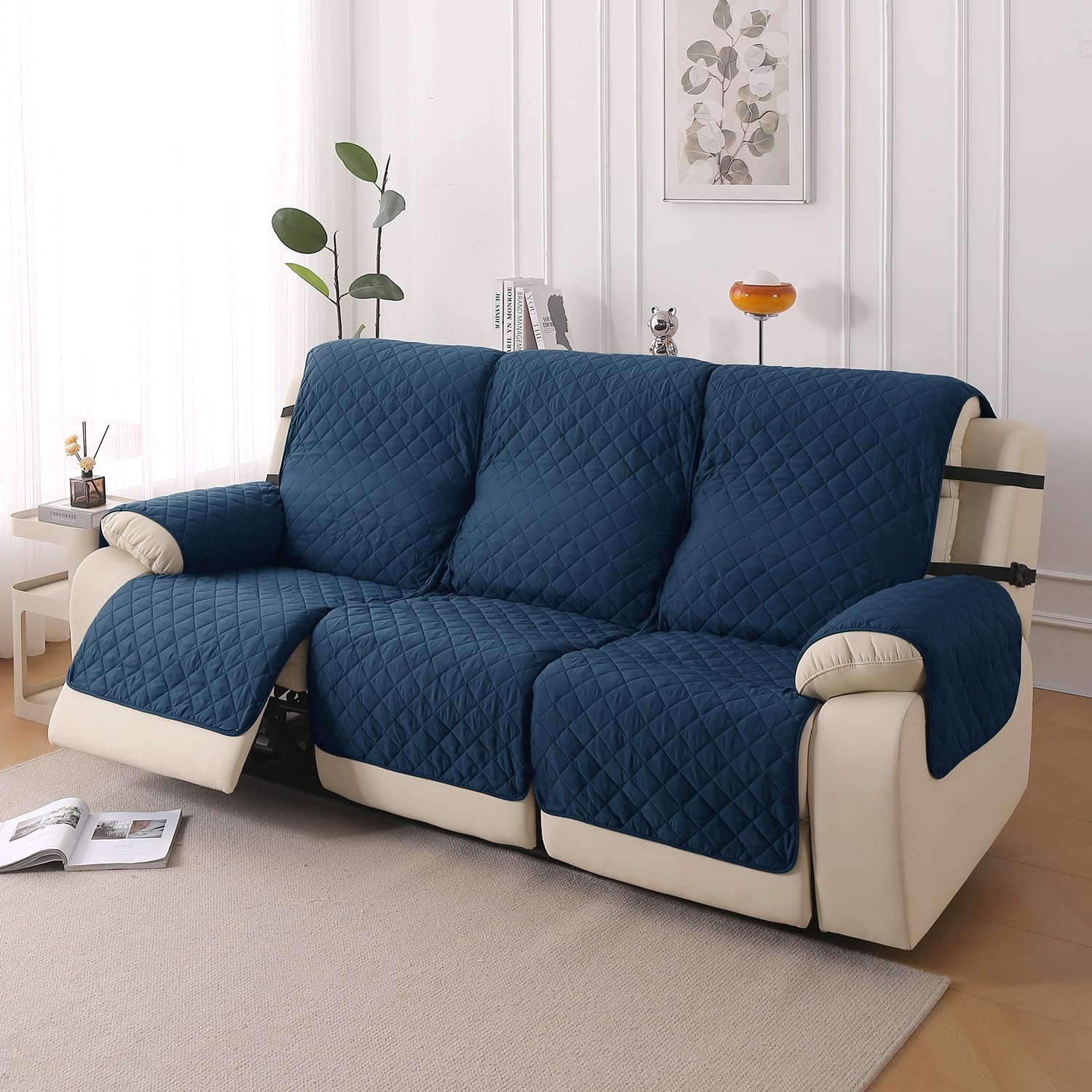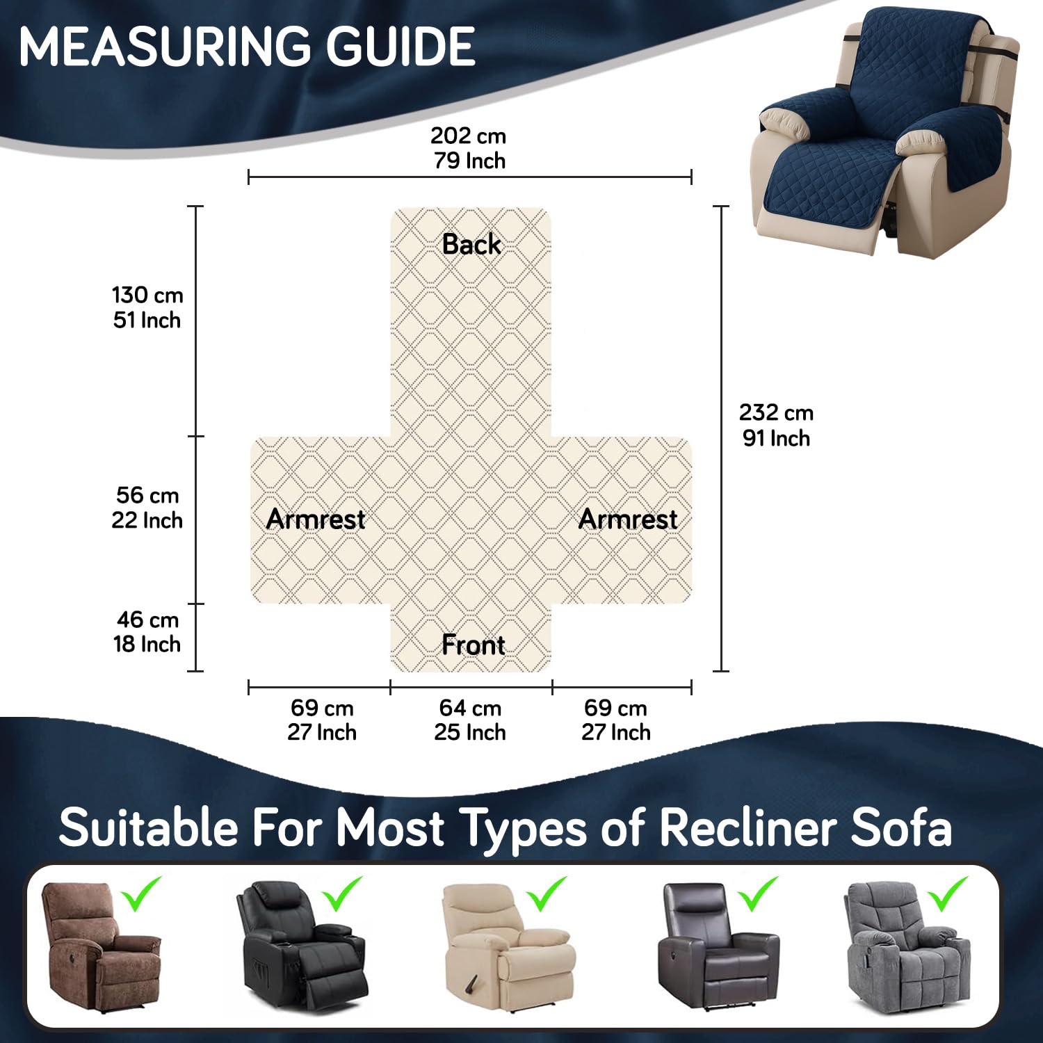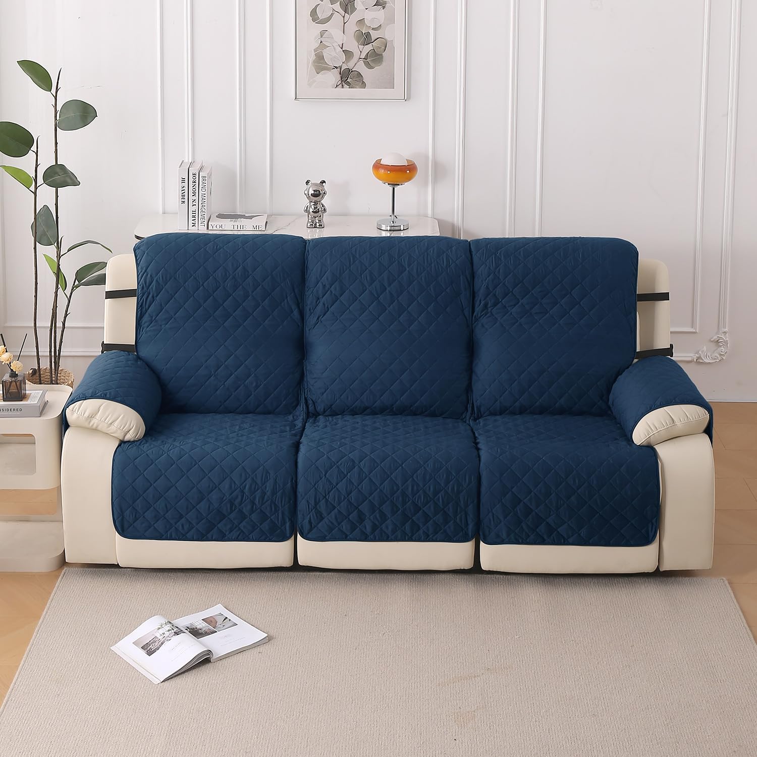 UrbanQuilt Recliner Sofa Slipcover Mat with Dual Belt for 1/2/3 Seater - Navy Blue