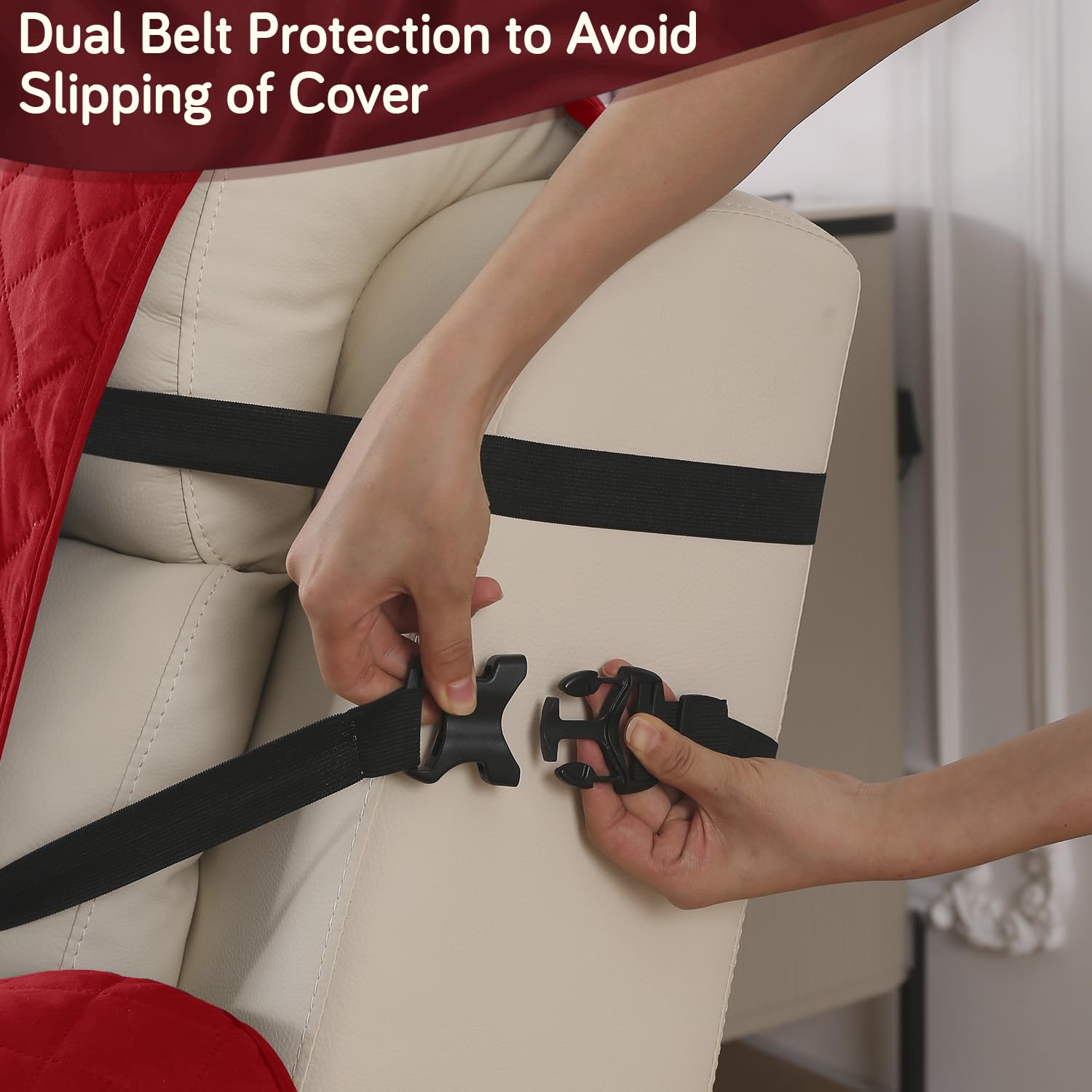 UrbanQuilt Recliner Sofa Slipcover Mat with Dual Belt for 1/2/3 Seater - Scarlet Red