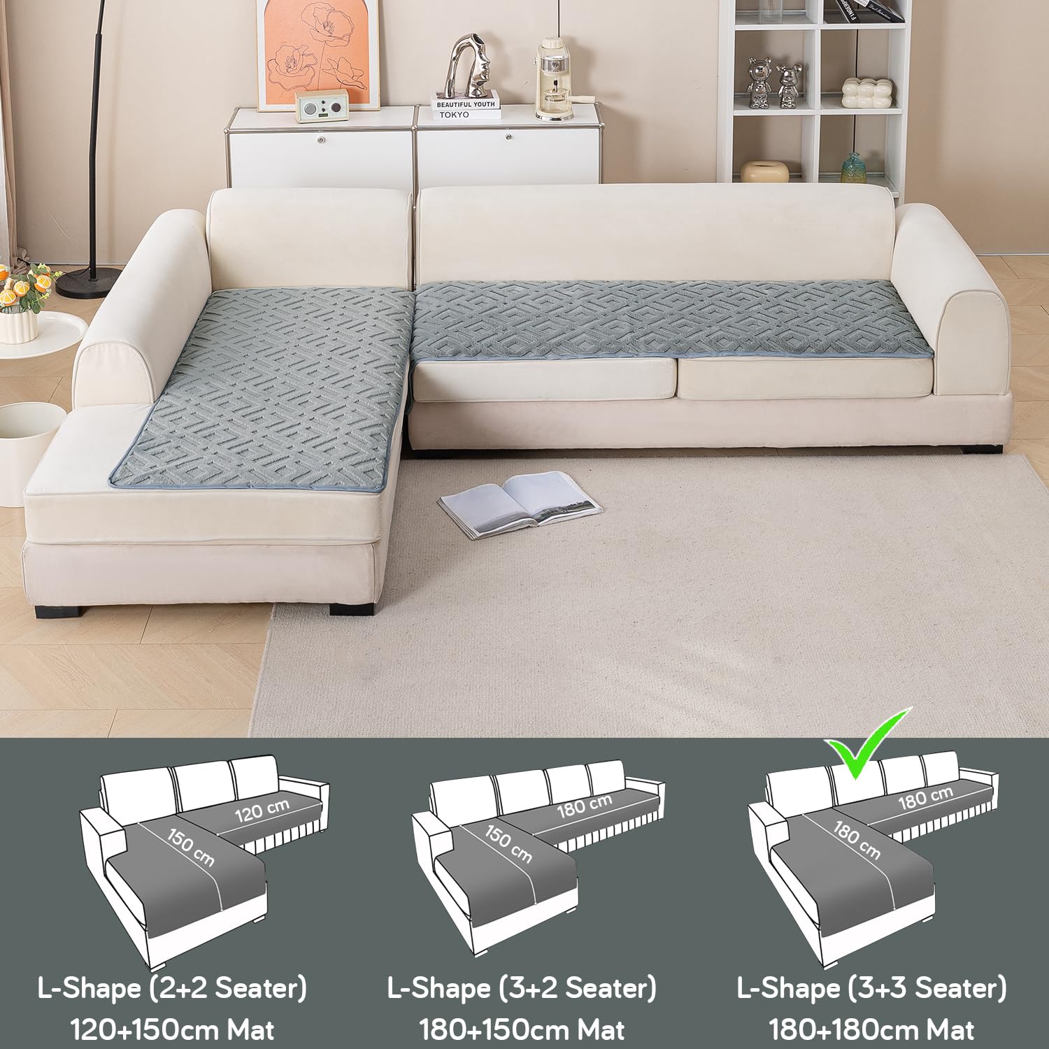 Designed for L-Shape Sofas – Specially made for L-shaped sofas in 2+2 (120+150 cm), 3+2 (180+150 cm), and 3+3 (180+180 cm) configurations. Extra fabric tucks in easily for a neat, secure fit.