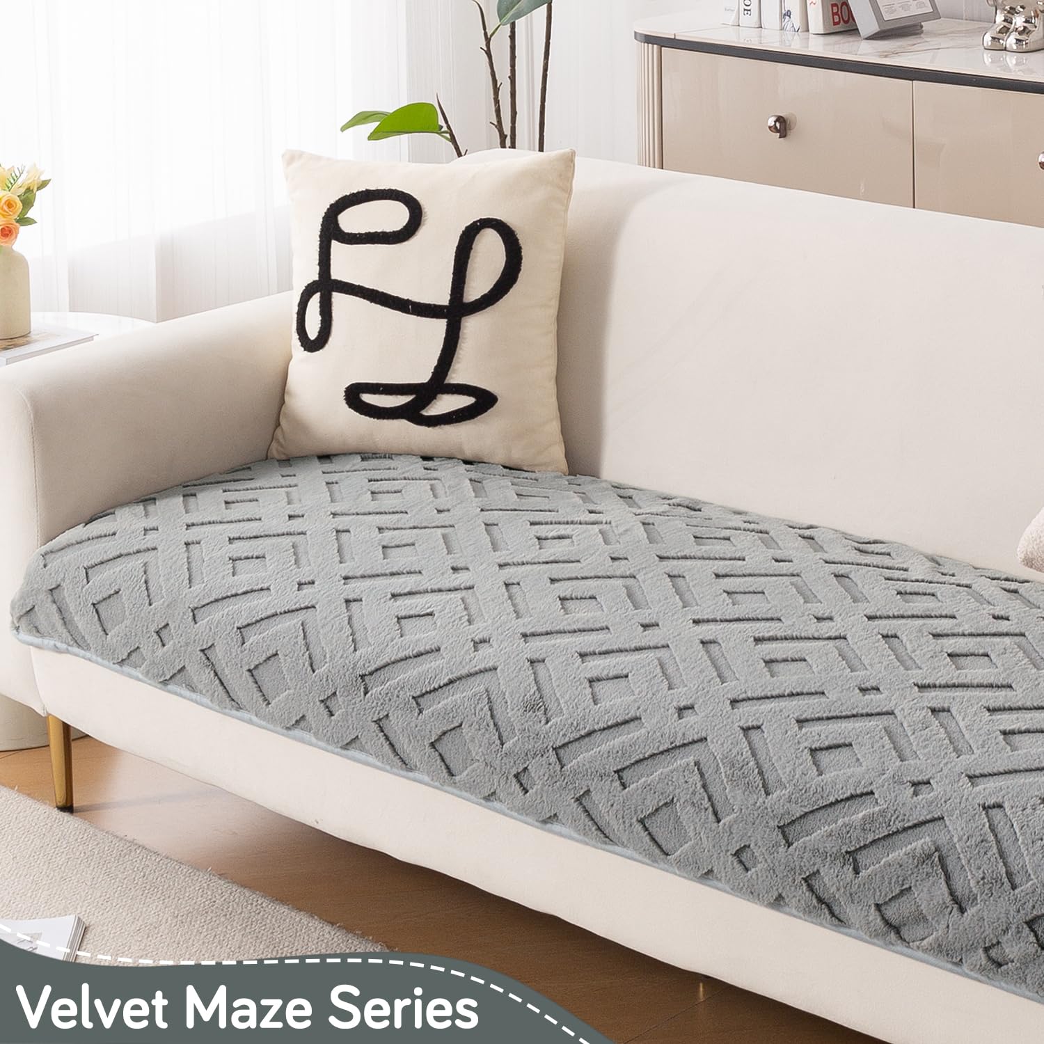 Velvet Maze Premium L Shape Sofa Cover Seat Mat, Dark Grey