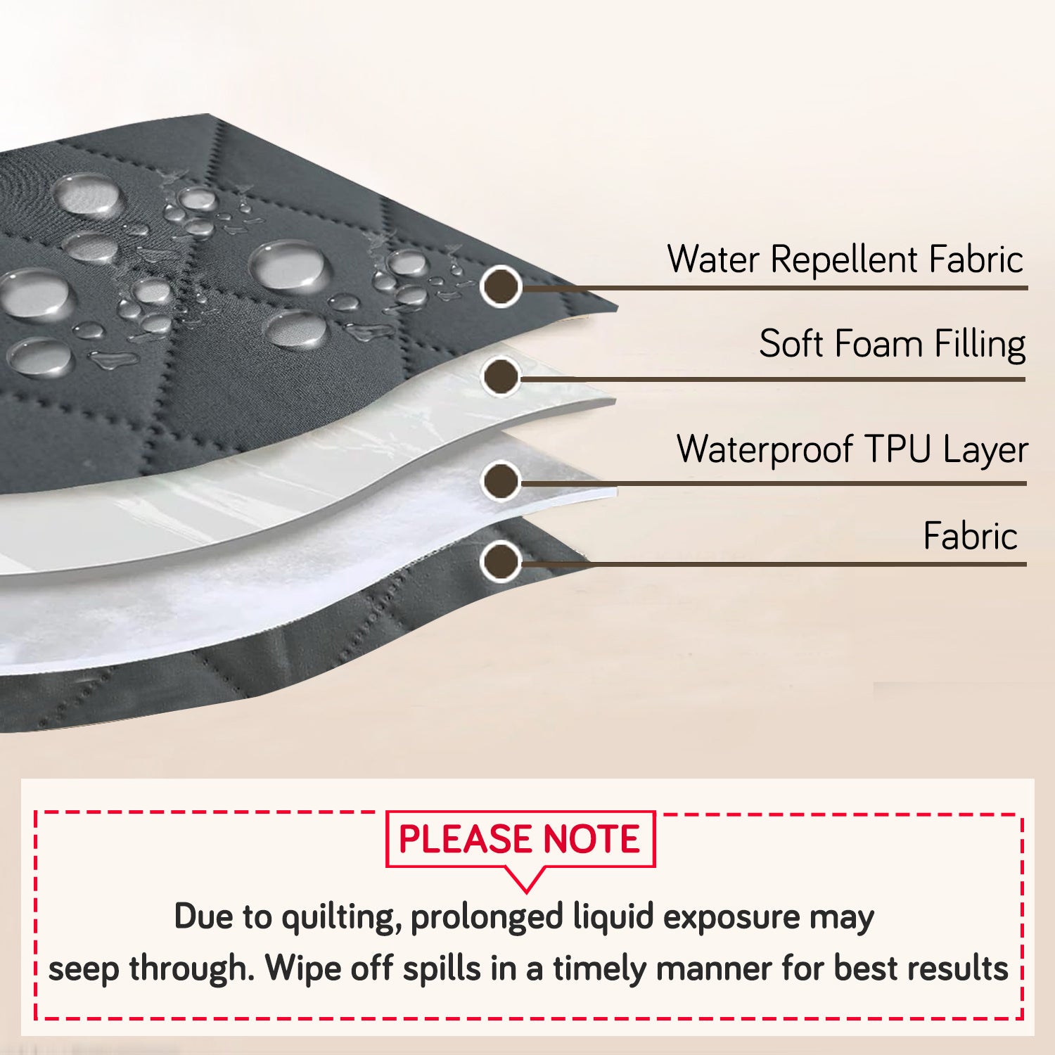 - Made with 80gsm water-repellent polyester fabric, cushioned microfiber layer, and leak-proof TPU waterproof coating.